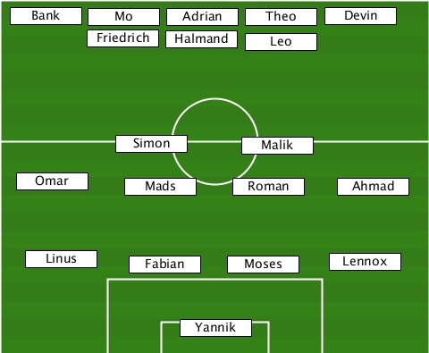 --------------------------Devin-- --Bank---Mo-----Adrian-Theo--------- --------Friedrich-Halmand-Leo------ ----------Simon-----Malik--------- ---Omar-----Mads-----Roman----Ahmad- ---Linus----Fabian--Moses----Lennox- ---------------Yannik------------