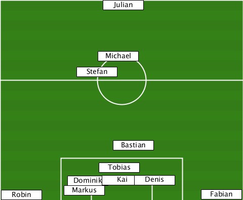 ---------------Julian------------ --------------Michael------------ ------------Stefan--------------- ----------------Bastian---------- --------------Tobias------------- ----------Dominik-Kai-Denis-------- --Robin----Markus-------------Fabian