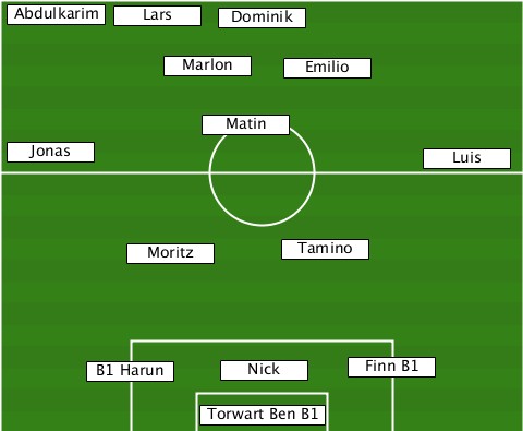 --Abdulkarim--------------------- --------Lars----Dominik----------- -----------Marlon---Emilio-------- --------------Matin-------------- --Jonas---------------------Luis-- ---------Moritz-----Tamino-------- -------B1 Harun-Nick-----Finn B1--- --------------Torwart Ben B1-----