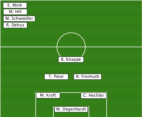 --E. Mink------------------------ --M. Hill------------------------ --M. Schweidler------------------ --R. Dehus----------------------- ---------------B. Knappe--------- -----------T. Peter-R. Freimuth--- ----------M. Kraft---C. Hechler--- --------------M. Degenhardt------