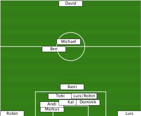 ---------------David------------- --------------Michael------------ -----------Ben------------------- ---------------Basti------------- ------------Tobi---Luis/Robin----- -----------Andi-Kai--Dominik------- -----------Markus---------------- --Robin----------------------Luis-