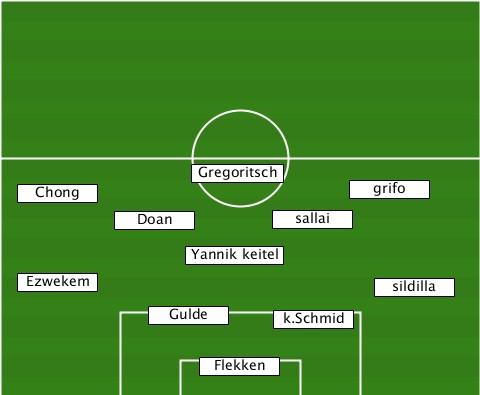 --------------Gregoritsch-------- ---Chong------------------grifo--- ---------Doan--------sallai------- --------------Yannik keitel------ ---Ezwekem-----------------sildilla -----------Gulde-----k.Schmid----- ---------------Flekken-----------