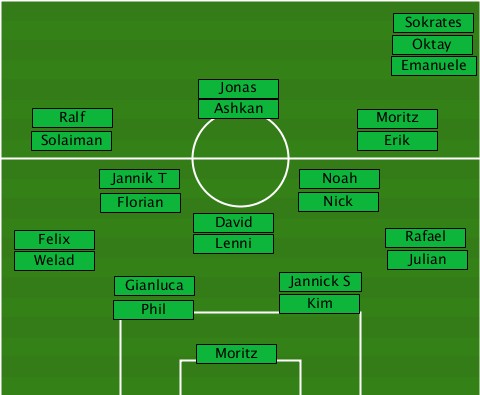 ----------------------------Sokrates ----------------------------Oktay ----------------------------Emanuele ---------------Jonas------------- ----Ralf--------Ashkan-----Moritz-- ----Solaiman--------------Erik---- --------Jannik T------Noah-------- --------Florian-------Nick-------- --------------David-------------- --Felix--------Lenni---------Rafael --Welad---------------------Julian ---------Gianluca----Jannick S---- ---------Phil--------Kim---------- ---------------Moritz------------