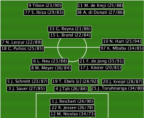 ---5 J. Schmitt (23/87)-19 T. Ebels [c] (28/92)-20 J. Kreipl (28/87)