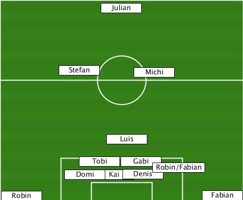 ---------------Julian------------ ---------Stefan-----Michi--------- ---------------Luis-------------- ----------Domi-Tobi-Kai-Gabi-Denis-Robin/Fabian --Robin----------------------Fabian