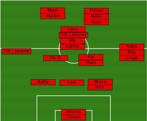 ----------Matti------------------ --------------------Floran------- ----------Marko------Nikki-------- --------------------Noel--------- ---------------Lücci------------- --------------Till / Jerome------ ---------------Ale--------------- ---------------Fuhrer-------Robo-- --Till / Jerome-------------Silly- -----------Flo D.---Kai------Jungo- -------------------Theo---------- --------Raffa--Leo-----Marco------- ---------------------Nick-------- ---------------Mischa------------ ---------------Timon-------------