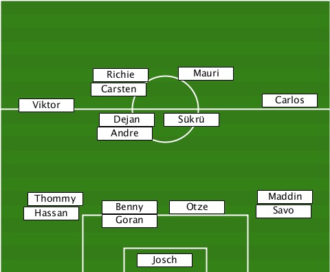 -------------------Mauri--------- ----------Richie----------------- ----------Carsten---------------- ---Viktor-------------------Carlos -----------Dejan--Sükrü----------- -----------Andre----------------- ----Hassan-Thommy-Benny-Goran-Otze-Savo-Maddin ---------------Josch-------------