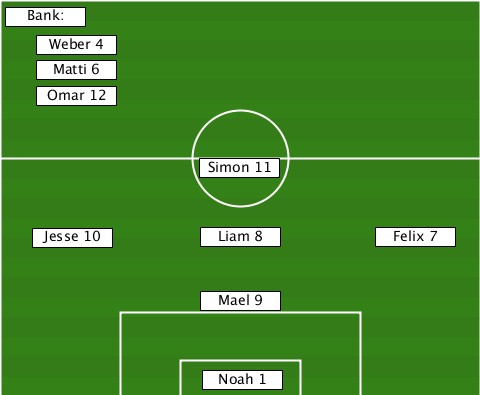 --Bank:-------------------------- ----Weber 4---------------------- ----Matti 6---------------------- ----Omar 12---------------------- ---------------Simon 11---------- ----Jesse 10----Liam 8------Felix 7 ---------------Mael 9------------ ---------------Noah 1------------