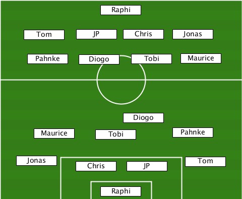 ---------------Raphi------------- -----Tom-----JP-----Chris--Jonas---- -----Pahnke--Diogo---Tobi---Maurice- ------------------Diogo---------- ------Maurice--Tobi-------Pahnke--- ----Jonas---Chris---JP-------Tom---- ---------------Raphi-------------