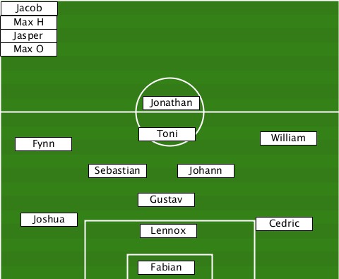 --Jacob-------------------------- -Max H--------------------------- -Jasper-------------------------- -Max O--------------------------- ---------------Jonathan---------- ---Fynn---------Toni--------William ----------Sebastian-Johann-------- --------------Gustav------------- ---Joshua-------Lennox------Cedric- --------------Fabian-------------