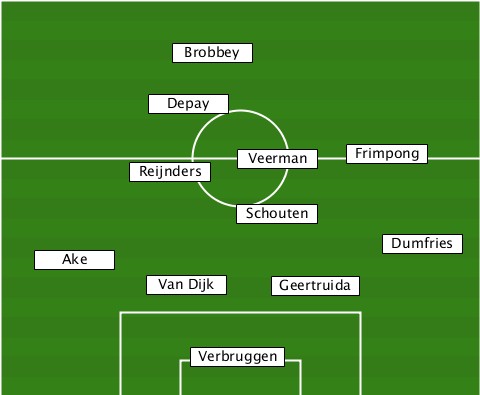 -------------Brobbey------------- -----------Depay----------------- ----------Reijnders-Veerman-Frimpong -----------------Schouten-------- ---------------------------Dumfries ----Ake-------------------------- -----------Van Dijk--Geertruida--- --------------Verbruggen---------