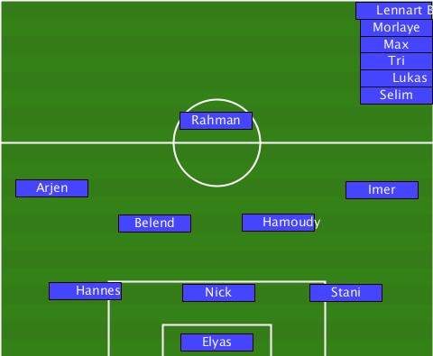 ----------------------------Lennart B. ----------------------------Morlaye ----------------------------Max-- ----------------------------Tri-- ----------------------------Lukas ----------------------------Selim ---------------Rahman------------ ---Arjen--------------------Imer-- ----------Belend----Hamoudy------- -----Hannes-----Nick------Stani---- ---------------Elyas-------------