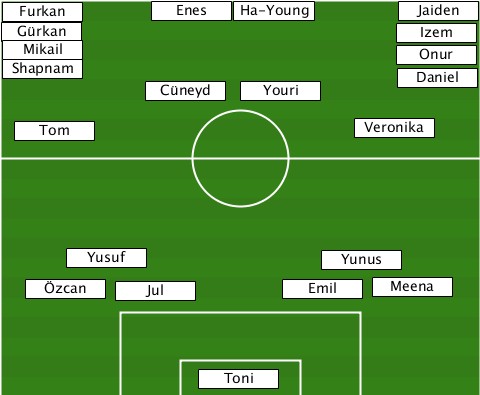 -----------------Ha-Young-------- --Furkan-----Enes-------------Jaiden --Gürkan---------------------Izem- --Mikail-Shapnam-Cüneyd-Youri---Onur-Daniel --Tom---------------------Veronika ------Yusuf-------------Yunus----- ---Özcan--Jul---------Emil---Meena-- ---------------Toni--------------
