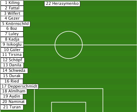 --1 Kiling----------------------- ------------22 Herasymenko------- --2 Fattal----------------------- --3 Wilfert---------------------- --4 Gezer------------------------ --5 Knörnschild------------------ --6 Boz-------------------------- --7 Luley------------------------ --8 Kadja------------------------ --9 Isikoglu--------------------- --10 Güler----------------------- --11 Tirsina--------------------- --12 Schöpf---------------------- --13 Danila---------------------- -14 Schweda---------------------- --15 Durak----------------------- -16 Ried------------------------- --17 Depperschmidt--------------- --18 Almlham--------------------- -19 Aydin------------------------ --20 Naminat--------------------- --21 Turan-----------------------