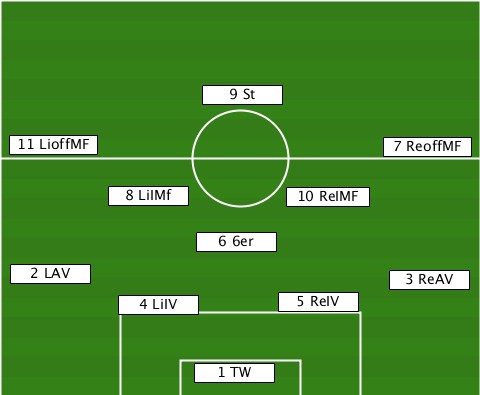 ---------------9 St-------------- --11 LioffMF----------------7 ReoffMF ---------8 LiIMf------10 ReIMF---- ---------------6 6er------------- --2 LAV---------------------3 ReAV ---------4 LiIV------5 ReIV------- --------------1 TW---------------