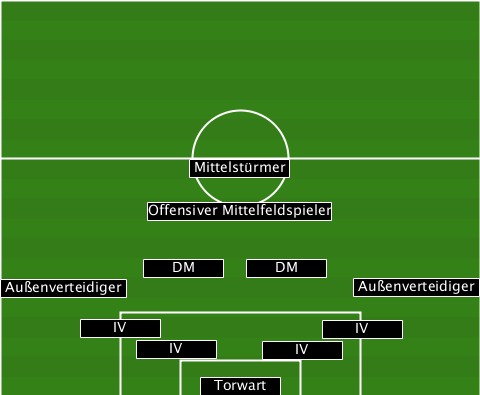 vermeintlich defensive Aufstellung mit vier Innenverteidigern, die in den Spielaufbau eingebunden sind, zwei offensiven Außenverteidigern, die jeweils ihre Seite abarbeiten, zwei defenisven Mittelfeldspieler, die auf der Doppelsechs für den Spielaufbau zuständig sind und einem offensiven auf der 10, der die Bälle aus dem Mittelfeld verarbeitet, die Flanken der Außenverteidiger weiterleitet und Räume für den Mittelstürmer schafft