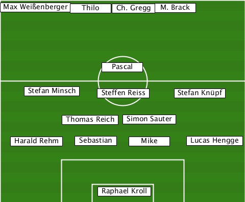 -Max Weißenberger---------------- -----------Thilo-Ch. Gregg-M. Brack ---------------Pascal------------ -----Stefan Minsch-Steffen Reiss-Stefan Knüpf ----------Thomas Reich-Simon Sauter ---Harald Rehm-Sebastian-Mike-Lucas Hengge --------------Raphael Kroll------