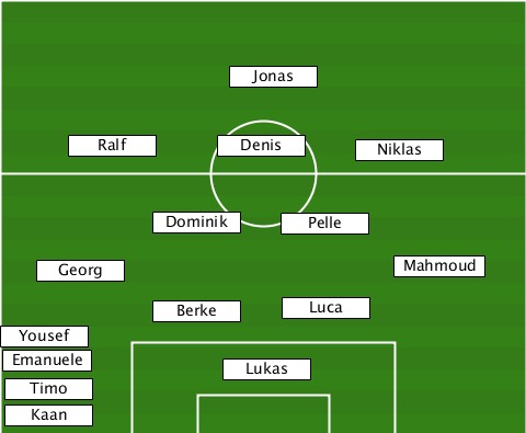 ---------------Jonas------------- ------Ralf------Denis----Niklas---- -----------Dominik--Pelle--------- ----Georg-----------------Mahmoud- -----------Berke----Luca---------- -Yousef-------------------------- --Emanuele------Lukas------------- --Timo--------------------------- --Kaan---------------------------