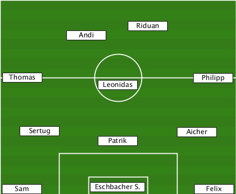 -------------------Riduan-------- ----------Andi------------------- --Thomas--------Leonidas------Philipp ----Sertug----------------Aicher-- ---------------Patrik------------ --Sam----------Eschbacher S.--Felix