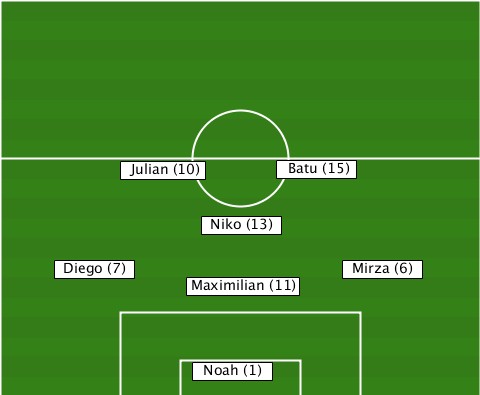 --------------------Batu (15)---- ---------Julian (10)------------- ---------------Niko (13)--------- -----Diego (7)-----------Mirza (6) --------------Maximilian (11)---- --------------Noah (1)-----------