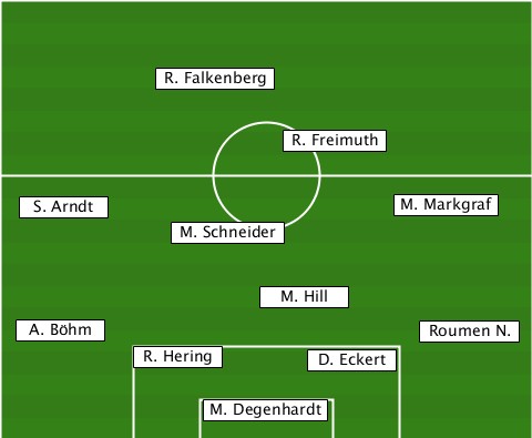 -----------R. Falkenberg--------- ------------------R. Freimuth---- ---S. Arndt---------------M. Markgraf ------------M. Schneider--------- -----------------M. Hill--------- --A. Böhm-------------------Roumen N. ---------R. Hering---D. Eckert---- --------------M. Degenhardt------