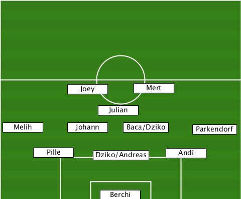 -------------------Mert---------- ----------Joey------------------- --------------Julian------------- --Melih----Johann---Baca/Dziko-Parkendorf ------Pille----Dziko/Andreas-Andi-- ---------------Berchi------------