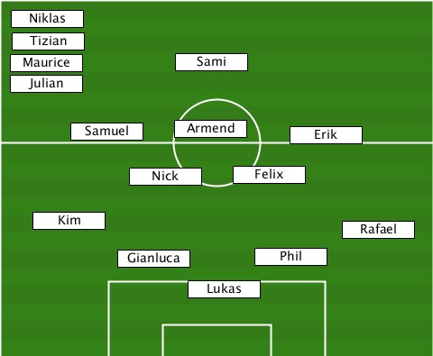 --Niklas------------------------- --Tizian------------------------- --Maurice------Sami--------------- --Julian------------------------- -------Samuel--Armend----Erik------ -----------Nick-----Felix--------- ----Kim---------------------Rafael ----------Gianluca---Phil--------- ---------------Lukas-------------