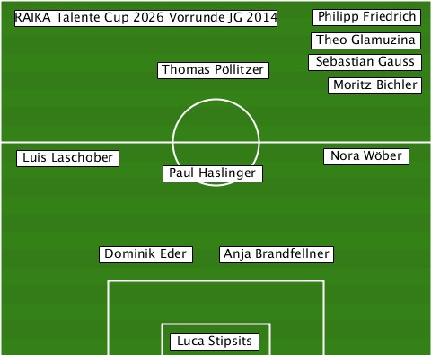 -------------------------Philipp Friedrich ---RAIKA Talente Cup 2026 Vorrunde JG 2014 -------------------------Theo Glamuzina -------------Thomas Pöllitzer-Sebastian Gauss --------------------------Moritz Bichler ---Luis Laschober---------Nora Wöber --------------Paul Haslinger----- ---------Dominik Eder-Anja Brandfellner --------------Luca Stipsits------