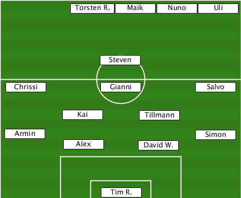 ----------------------Nuno------- -----------Torsten R.-Maik----Uli-- ---------------Steven------------ --Chrissi-------Gianni-------Salvo- ----------Kai--------Tillmann----- --Armin---------------------Simon- ----------Alex-------David W.----- ---------------Tim R.------------