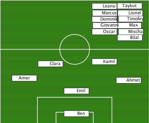 ---------------------------Taykut ---------------------Leano------- ---------------------Marcus-Lionel ---------------------Dominik-Timofey ---------------------Giovanni-Max- ---------------------Oscar--Mischa ---------------------------Bilal- ----------Clara-------Kamil------- ----Amer-------------------Ahmet-- ---------------Emil-------------- ---------------Ben---------------