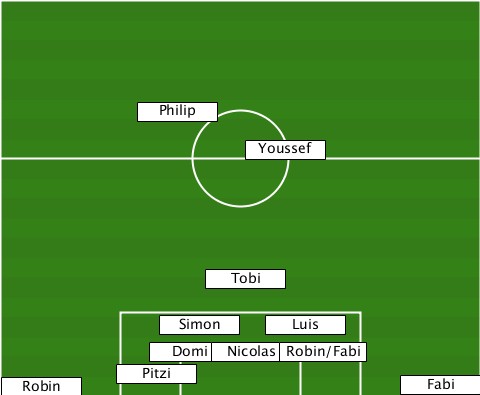 -----------Philip---------------- ------------------Youssef-------- ---------------Tobi-------------- ------------Simon---Luis---------- -----------Domi--Nicolas-Robin/Fabi --Robin---Pitzi---------------Fabi-