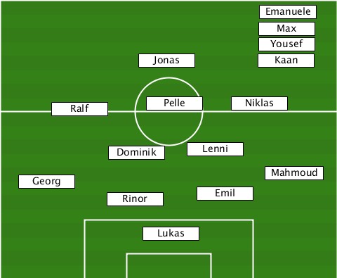 --------------------------Emanuele --------------------------Max---- --------------------------Yousef- ---------------Jonas-------Kaan--- ------Ralf------Pelle----Niklas---- ------------Dominik-Lenni--------- ---Georg--------------------Mahmoud ------------Rinor----Emil--------- ---------------Lukas-------------