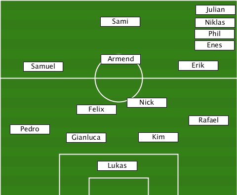 ----------------------------Julian ---------------Sami----------Niklas ----------------------------Phil- ----------------------------Enes- -----Samuel-----Armend------Erik--- ------------Felix---Nick---------- ---------------------------Rafael ---Pedro------------------------- ----------Gianluca---Kim---------- ---------------Lukas-------------