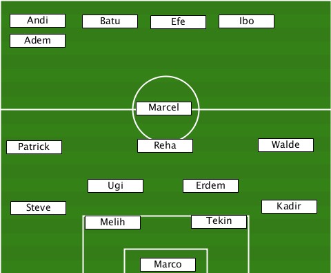 --Andi--------------------------- ---------Batu----Efe-----Ibo------- --Adem--------------------------- ---------------Marcel------------ --Patrick-------Reha--------Walde-- ----------Ugi-------Erdem--------- --Steve---------------------Kadir- ----------Melih------Tekin-------- ---------------Marco-------------
