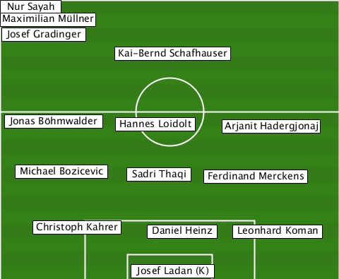 -Nur Sayah----------------------- -Maximilian Müllner-------------- --Josef Gradinger---------------- ------------Kai-Bernd Schafhauser --Jonas Böhmwalder-Hannes Loidolt-Arjanit Hadergjonaj ---Michael Bozicevic-Sadri Thaqi-Ferdinand Merckens -----Christoph Kahrer-Daniel Heinz-Leonhard Koman --------------Josef Ladan (K)----