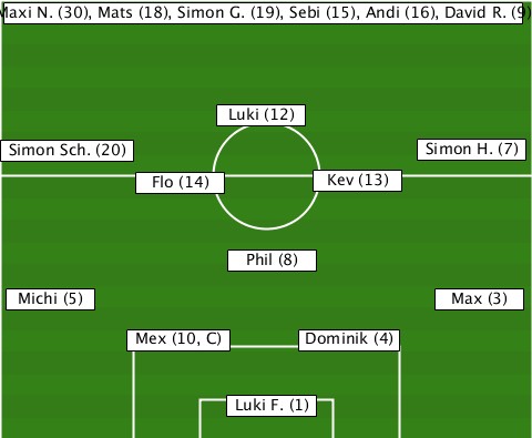 --Maxi N. (30), Mats (18), Simon G. (19), Sebi (15), Andi (16), David R. (9)