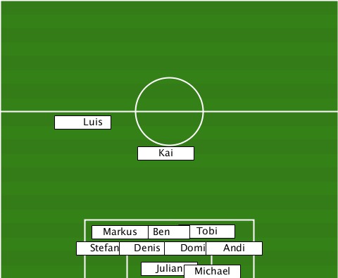-------Luis---------------------- --------------Kai---------------- ----------Markus-Ben-Tobi---------- ---------Stefan-Denis-Domi-Andi----- ---------------Julian-Michael-----
