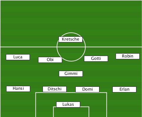 ---------------Kretsche---------- ---Luca----Obi--------Gotti----Robin ---------------Gimmi------------- ---Hansi----Ditschi-Domi------Erlan- --------------Lukas--------------
