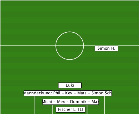-----------------------Simon H.-- ---------------Luki-------------- -------Manndeckung: Phil - Kev - Mats - Simon Sch. -----------Michi - Mex - Dominik - Max --------------Fischer L. (1)-----
