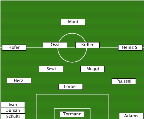 ---------------Mani-------------- --Hofer-----Ossi----Kofler-----Heinz S. ----------Sewi------Muggi--------- ---Herzi-------------------Paussei --------------Lorber------------- --Ivan--------------------------- --Dursan-Schulti-Tormann-------Adams
