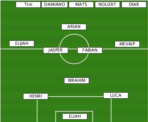 ----------------------NOUZAT----- -----Tim---DAMIANO-MATS--------DIAR- ---------------ARIAN------------- ---ELIJAH------------------MEVAIP- -----------JASPER--FABIAN--------- ---------------IBRAHIM----------- ------HENRI--------------LUCA----- ---------------ELIAH-------------