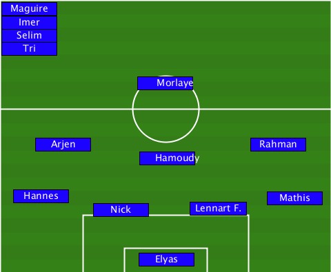 --Maguire------------------------ --Imer--------------------------- --Selim-------------------------- --Tri---------------------------- ---------------Morlaye----------- -----Arjen-----------------Rahman- ---------------Hamoudy----------- ---Hannes-------------------Mathis ----------Nick-------Lennart F.--- ---------------Elyas-------------
