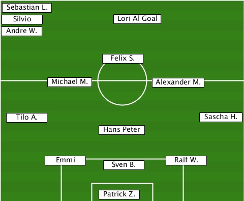 --Sebastian L.------------------- --Silvio---------Lori Al Goal----- --Andre W.----------------------- ---------------Felix S.---------- --------Michael M.----Alexander M. --Tilo A.--------------------Sascha H. --------------Hans Peter--------- -------Emmi-----Sven B.--Ralf W.--- --------------Patrick Z.---------