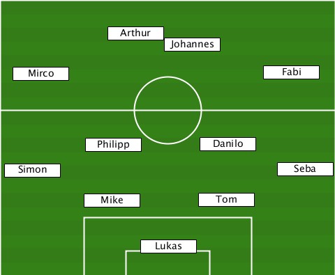 ------------Arthur--------------- -----------------Johannes-------- ---Mirco--------------------Fabi-- ----------Philipp-----Danilo------ --Simon----------------------Seba- ---------Mike--------Tom---------- ---------------Lukas-------------