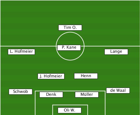 ---------------Tim O.------------ ---L. Hofmeier--P. Kane----Lange--- ----------J. Hofmeier-Henn-------- ---Schwob--Denk------Müller--de Waal ---------------Oli W.------------