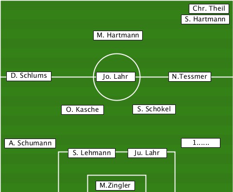 ---------------------------Chr. Theil --------------------------S. Hartmann --------------M. Hartmann-------- --D. Schlums----Jo. Lahr---N.Tessmer ----------O. Kasche--S. Schökel--- --A. Schumann--------------1...... -----------S. Lehmann-Ju. Lahr---- ---------------M.Zingler---------