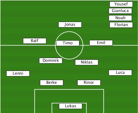 ---------------------------Yousef ---------------------------Gianluca ---------------------------Noah-- ---------------Jonas--------Florian -------Ralf----Timo-----Emil------- -----------Dominik--Niklas-------- ---Lenni--------------------Luca-- -----------Berke----Rinor--------- ---------------Lukas-------------