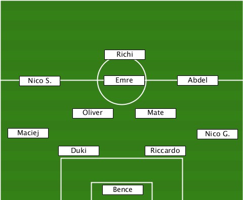---------------Richi------------- ----Nico S.-----Emre-------Abdel--- -----------Oliver---Mate---------- --Maciej--------------------Nico G. ---------Duki---------Riccardo---- ---------------Bence-------------