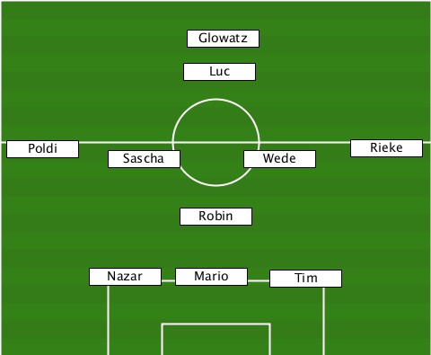 ---------------Glowatz----------- ---------------Luc--------------- --Poldi---Sascha------Wede----Rieke- ---------------Robin------------- --------Nazar--Mario---Tim---------