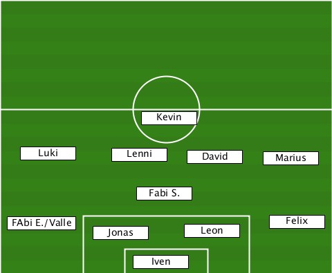 ---------------Kevin------------- ---Luki------Lenni---David----Marius ---------------Fabi S.----------- --FAbi E./Valle-Jonas-Leon----Felix- --------------Iven---------------